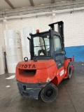 Toyota Diesel forklift for sale, model 7FDA50. It is a heavy-duty machine, extremely robust and powerful, ideal for yards and demanding external work. Year 2010, compliant with CE regulations.