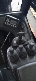 Minihebel, Grammer Komfortsitz MSG 75/521, hinterer Haltegriff mit Hupe, Stahlkabine schingend gelagert (Bauhöhe 2835 mm), Sonnenblende, Glasdach mit Scheibenwischer und Waschanlage (Bauhöhe + 50 mm), Fahrerschutzdachabdeckung Metallgitter, Sonderausstattung: 5 Ventile mit Schlauchführung für 3. und 4. Ventil, LED-Fron- und Rückkombileuchte, akustisches Rückfahrsignal, Blaues LED-Warnlicht nach hinten, schmale LED-Leuchten am Mast, Multifunktionsdisplay Deluxe