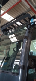 Minihebel, Grammer Komfortsitz MSG 75/521, hinterer Haltegriff mit Hupe, Stahlkabine schingend gelagert (Bauhöhe 2835 mm), Sonnenblende, Glasdach mit Scheibenwischer und Waschanlage (Bauhöhe + 50 mm), Fahrerschutzdachabdeckung Metallgitter