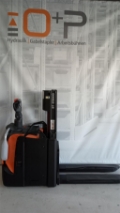 Endkundenbemerkung: Doppelstock, Geschwindigkeit 10 km/h, Schildkrötentaste am Deichselgriff, Mast Duplex Tele 2100 mm, Bauhöhe 1593 mm, Freihub 172 mm, Hubhöhe 2100 mm, Initialhub 120 mm, Gabeln 1200 mm, Maß über Gabeln 570 mm, Chassisbreite 790 mm, Lastschutzgitter Höhe 500 mm, Plattform klappend, feste Seitenschutzwände, schmale Deichsel, Fingerschutz Plexiglas, Antriebsrad Premium, Gabelrollen Tandem, Vulkollan, Stützrad Premium, PIN-Code Aktivierung, CE-Zertifikat, Sonderausstattung: Schildkrötentaste am Deichselgriff, Plattform hochklappbar, Fingerschutz Plexiglas, feste Seitenschutzwände, , SpecialEquipment: Lastschutzgitter, CE Zertifikat, Doppelstock