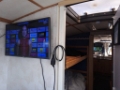 Solceller på taket som laddar samtliga batterier, gasolspis och ugn, mikrovågsugn, kaffekokare och kylskåp på 24 volt.