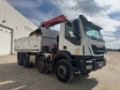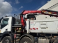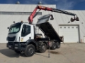 DESCRIZIONE – Autocarro in ottime condizioni generali, ribaltabile trilaterale e gru marca Fassi modello F175.A.0.23, radiocomando, benna mordente, 4 assi, configurazione assi 8x4, Euro 6, cambio automatico, balestrato, clima