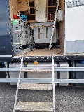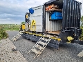 Robuust opgebouwd op een trailer. Allerlei hoogte verstelbare poten zitten eraan. Aanrijden op werkplek, en je kunt deze te allen tijde gelijk waterpas stellen.