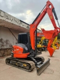 Kubota KX163 is a 5.6-ton zero-tail-swing mini excavator, ideal for municipal works, landscaping, indoor demolition and confined sites. Powered by Kubota V2607 engine (35.5kW), it delivers low noise and excellent fuel efficiency. Featuring zero-tail swing and boom offset, it enables 360° operation in tight spaces. The three-pump combined flow hydraulic system ensures smooth and efficient combined operations. Equipped with a dozer blade and premium ROPS/TOPS cab, it offers outstanding comfort and reliability for small construction projects.