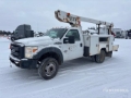 Ford PowerStroke V8 6.7 L Diesel 300 hp Engine, 2011 US EPA Label, Requires Diesel Exhaust Fluid, 14975 Engine hrs, Automatic Transmission, 6500 lb Front Axle, 12000 lb Rears, 16500 lb GVWR, 225/70R19.5, Spring Suspension, 141 in Wheelbase, PTO, 350 lb Capacity, Front Mounted, One-Person Telescopic Boom, Utility Body, Predator 4375 4375 W Gasoline Generator Set, 13 ft x 96 in Bed, Pintle Hitch