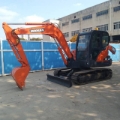 1. Basic Information • Model: Doosan DX60-9C • Type: Crawler Excavator (6-ton class) • Country of Manufacture: China (Yantai, Shandong) • Operating Weight: 5,700 kg • Bucket Capacity: 0.21–0.23 m³ • Boom Length: 3,000 mm • Arm Length: 1,600 mm • Track Shoe Width: 400 mm • Ground Pressure: 0.30 MPa • Gradeability: 70% (35°) • Tail Swing Radius: 1,650 mm 2. Engine • Model: Doosan D24C Diesel • Type: 4-cylinder, inline, water-cooled, turbocharged • Rated Power: 38.9 kW / 2,100 rpm • Displacement: 2.392 L • Bore × Stroke: 90 × 94 mm • Emission: China Stage III 3. Hydraulic & Performance • Main Pump: 2 × variable displacement piston pumps • System Pressure: 21.0 MPa • Travel Speed: 4.2 / 2.3 km/h (High/Low) • Swing Speed: 9.0 rpm • Bucket Digging Force: 42.0 kN • Arm Digging Force: 28.0 kN • Max. Drawbar Pull: 50.5 kN 4. Working Dimensions • Max. Digging Radius: 6,136 mm • Max. Digging Depth: 3,807 mm • Max. Digging Height: 5,788 mm • Max. Dumping Height: 4,064 mm • Max. Vertical Digging Depth: 3,037 mm 5. Dimensions & Capacities • Shipping Dimensions (L×W×H): 5,870 × 2,000 × 2,565 mm • Min. Ground Clearance: 350 mm • Fuel Tank: 72 L • Hydraulic Oil Tank: 80 L • Engine Oil: 9.5 L