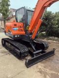 The Doosan 60 (mainly model DX60) is a 6-ton compact crawler excavator by Doosan Infracore, renowned for its compact design, versatility and reliability, ideal for small-to-medium construction, municipal works, landscaping and rentals, especially in narrow spaces. With an operating weight of 5,550 kg and transport dimensions of 6,120×1,920×2,855 mm, it is equipped with a Yanmar 4TNV94L 4-cylinder engine (3.054 L displacement, 54.9 kW rated power at 2,400 rpm) that is fuel-efficient and meets National IV emission standards. Its advanced hydraulic system provides 37 kN bucket digging force and precise control, while key performance includes 0.175 m³ bucket capacity, 8.7 rpm swing speed, 10/30 km/h travel speed and 70% climbing ability. It has a 120 L fuel tank, user-friendly cab, fuel-saving technologies and easy maintenance, with upgraded new models (DX60E-10, DX60 ACE-10) for diverse needs.