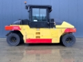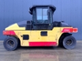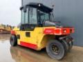 The Dynapac CP224 is a robust rubber-tyred roller designed for versatility and efficiency. Equipped with a Cummins QSB 3.3 engine producing 74kW, it ensures powerful operation. The machine includes features such as EPA compliance, tire regulation, EROPS cabin, and a water sprinkler system. With a moveable seat, speed meter, backup alarm, and beacon, it promises operator comfort and safety. This roller, in good and clean condition, has genuine hours recorded and utilizes a hydrostatic drive system for smooth operation.